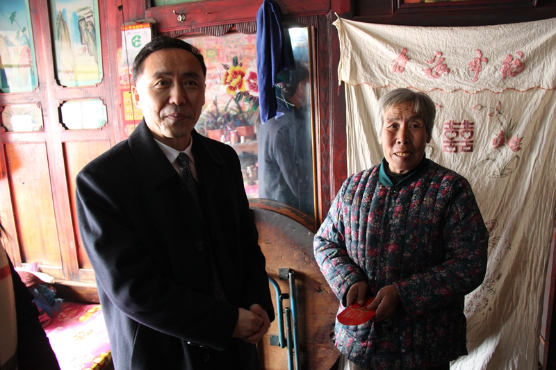 在閻書記的帶領(lǐng)下,慰問團(tuán)驅(qū)車走進(jìn)虎皮峪村的深山里,開始逐家走訪困難戶。首先來到貧困戶金大爺?shù)募遥鸫鬆斃习榛寄X血栓臥床十余年,金大爺需要常年護(hù)理老伴,家庭沒有經(jīng)濟(jì)收入,生活十分困難。金大爺接到慰問團(tuán)送來的1000元現(xiàn)金,當(dāng)場(chǎng)流下了熱淚,感謝中天集團(tuán)能夠惦記他們這樣的貧困戶,1000元現(xiàn)金可以購(gòu)買全部的年貨,這個(gè)春節(jié)一定會(huì)幸福開心。