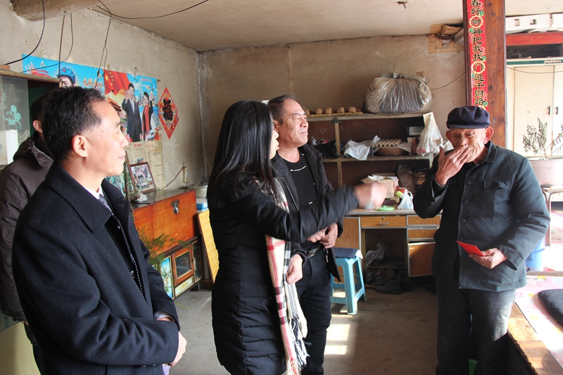 隨后,慰問團(tuán)徒步很遠(yuǎn)的山路,走進(jìn)了居住在山溝里的王大爺家。低矮的房子,房子前后就是大山,王大爺老倆口居住在這偏遠(yuǎn)的山溝里,家庭沒有任何經(jīng)濟(jì)收入,十分貧困,慰問團(tuán)人員看了無不心酸。許總親手送上慰問金,表達(dá)中天人對(duì)他們的問候,希望他們購(gòu)買年貨,好好過一個(gè)年。