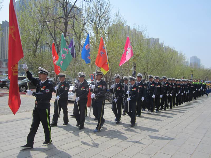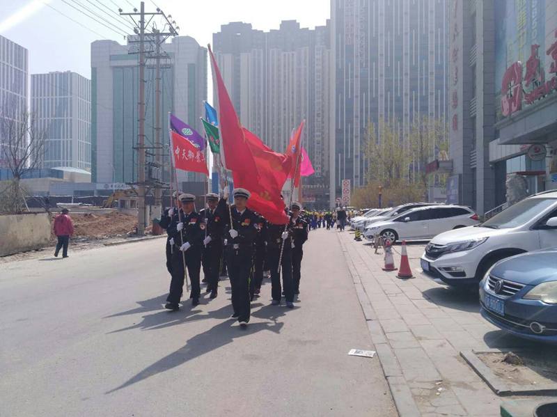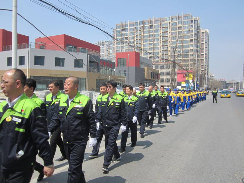 當(dāng)天中午12點整,來自中天御景華庭、中天壹品、中天君臨天下、中天尚品、中天桃花源、中天御景灣六個物業(yè)小區(qū)的員工,身著由物業(yè)公司配發(fā)的統(tǒng)一服裝,整齊地聚集在集團總部門前,整裝待發(fā),伴隨著物業(yè)公司總經(jīng)理王化啟一聲令下,徒步活動正式拉開序幕。隊伍浩浩蕩蕩,呼喊著嘹亮的口號,整齊地走在大街上,展現(xiàn)了中天物業(yè)人的良好形象。