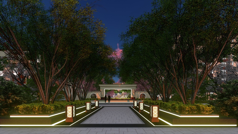 園區(qū)道路采用人車分流的設(shè)計(jì)方式,避免大量私家車對(duì)居住環(huán)境的影響,保證小區(qū)的安全與安靜。設(shè)計(jì)結(jié)合單元入口、車庫(kù)位置及各功能分區(qū),遵循新中式景觀特點(diǎn),圍合出院落空間。