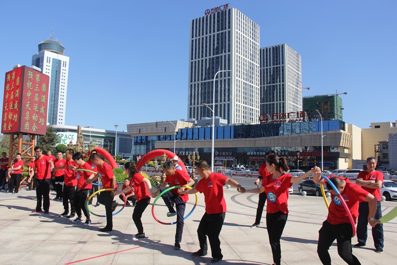 “激情傳遞”每隊(duì)10人。比賽開始前,所有隊(duì)員手拉手平舉排成一隊(duì),從一端一個(gè)人的手中將第一個(gè)呼啦圈進(jìn)行依次專遞,直至第5個(gè)呼啦圈傳遞到隊(duì)伍的最后一個(gè)人手中。本項(xiàng)目考驗(yàn)的是團(tuán)員之間團(tuán)結(jié)協(xié)作的能力,遼陽(yáng)公司以絕對(duì)的優(yōu)勢(shì)取得第一名,萬(wàn)豪酒店和集團(tuán)機(jī)關(guān)分列二、三名。