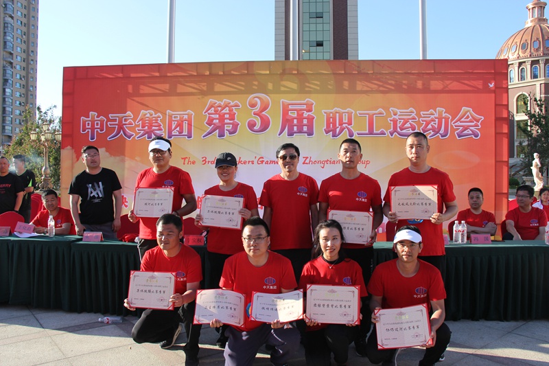 5月31日下午,中天集團(tuán)第三屆職工運(yùn)動(dòng)會(huì)如期舉行。只見(jiàn)在中天市府廣場(chǎng)上,彩旗飛揚(yáng),鑼鼓喧天,來(lái)自于集團(tuán)機(jī)關(guān)、天華公司、天泰公司、遼陽(yáng)公司、盤錦公司、萬(wàn)豪酒店、物業(yè)公司、農(nóng)貿(mào)公司、商業(yè)公司、建筑公司十支代表隊(duì)的300多名員工匯集在這里,釋放激情,揮灑汗水,盡情享受著中天集團(tuán)的體育盛宴。這不僅僅是一次風(fēng)貌的展示,也是中天集團(tuán)活力的展示,更是企業(yè)形象的大展示。