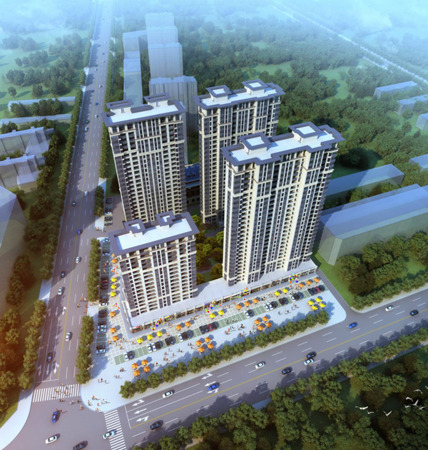 該地塊用地性質(zhì)為居住用地、商業(yè)服務(wù)業(yè)設(shè)施用地,用地面積:42490.9平方米,總建筑面積:91297.45平方米,其中住宅建筑面積為69489.92平方米,商業(yè)建筑面積為6810.74平方米。南北兩排住宅建筑與沿街商業(yè)圍合形成中心景觀區(qū)域,既滿足用戶需要又提升商業(yè)價值。另外還設(shè)計了物業(yè)配套建筑和文化活動中心,物業(yè)建筑面積為300平方米,不僅為用戶提供了更加方便快捷的服務(wù),還為用戶配備了舒適的休閑娛樂活動區(qū);小區(qū)道路等級分明,功能明確,沿街設(shè)置三個入口以及一個地下車庫入口,小區(qū)道路寬6米,機動車位共665個,其中地上停車位293個,地下停車位372個,為業(yè)主提供了足夠的停車空間;小區(qū)綠化率達(dá)到30%,讓業(yè)主置身園林體會“曲徑通幽處”、“小橋流水人家”的意境。