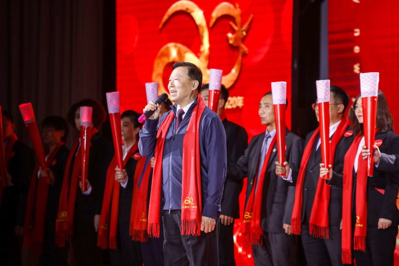 下午一點(diǎn)三十分,活動(dòng)啟幕,只見于寶權(quán)董事長(zhǎng)手持火炬,昂首走進(jìn)紀(jì)念活動(dòng)大廳,21名火炬手早已整裝待發(fā),等待董事長(zhǎng)為其點(diǎn)燃手中的火炬。21名火炬手,他們每人代表中天發(fā)展的一個(gè)年份,也是中天產(chǎn)業(yè)及業(yè)務(wù)系統(tǒng)的突出代表。首先董事長(zhǎng)點(diǎn)燃了物業(yè)集團(tuán)公司副總經(jīng)理馬曉泓手中的火炬,她是中天集團(tuán)第一名員工,見證了中天星星之火的燎原歷程。21名火炬手手擎董事長(zhǎng)為其點(diǎn)燃的火炬,跟隨著董事長(zhǎng)的腳步走上舞臺(tái)。每一名火炬手介紹了自己,也見證了中天的發(fā)展歷程。