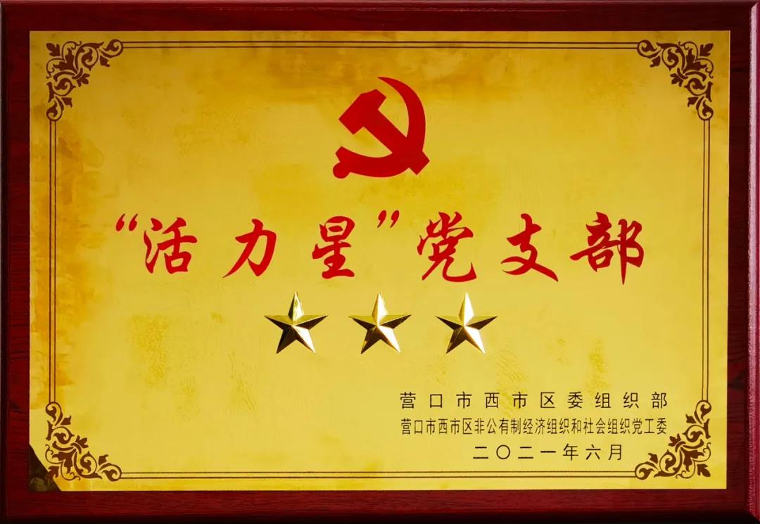 2021年6月29日,中共營口市西市區(qū)委組織部召開“兩新”組織表獎大會,表獎全區(qū)非公有制經(jīng)濟組織和社會組織“三星”黨支部,中天企業(yè)集團黨支部獲得“活力星”榮譽稱號。