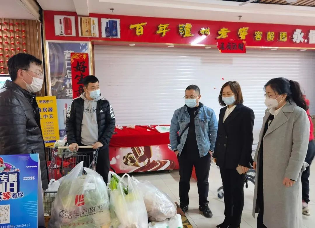 中天桃花源農(nóng)貿(mào)市場面對疫情來臨,一面安排商戶保障食品充足,一面組織人員做好進(jìn)店顧客的防疫檢測,保證市場內(nèi)的安全運營。