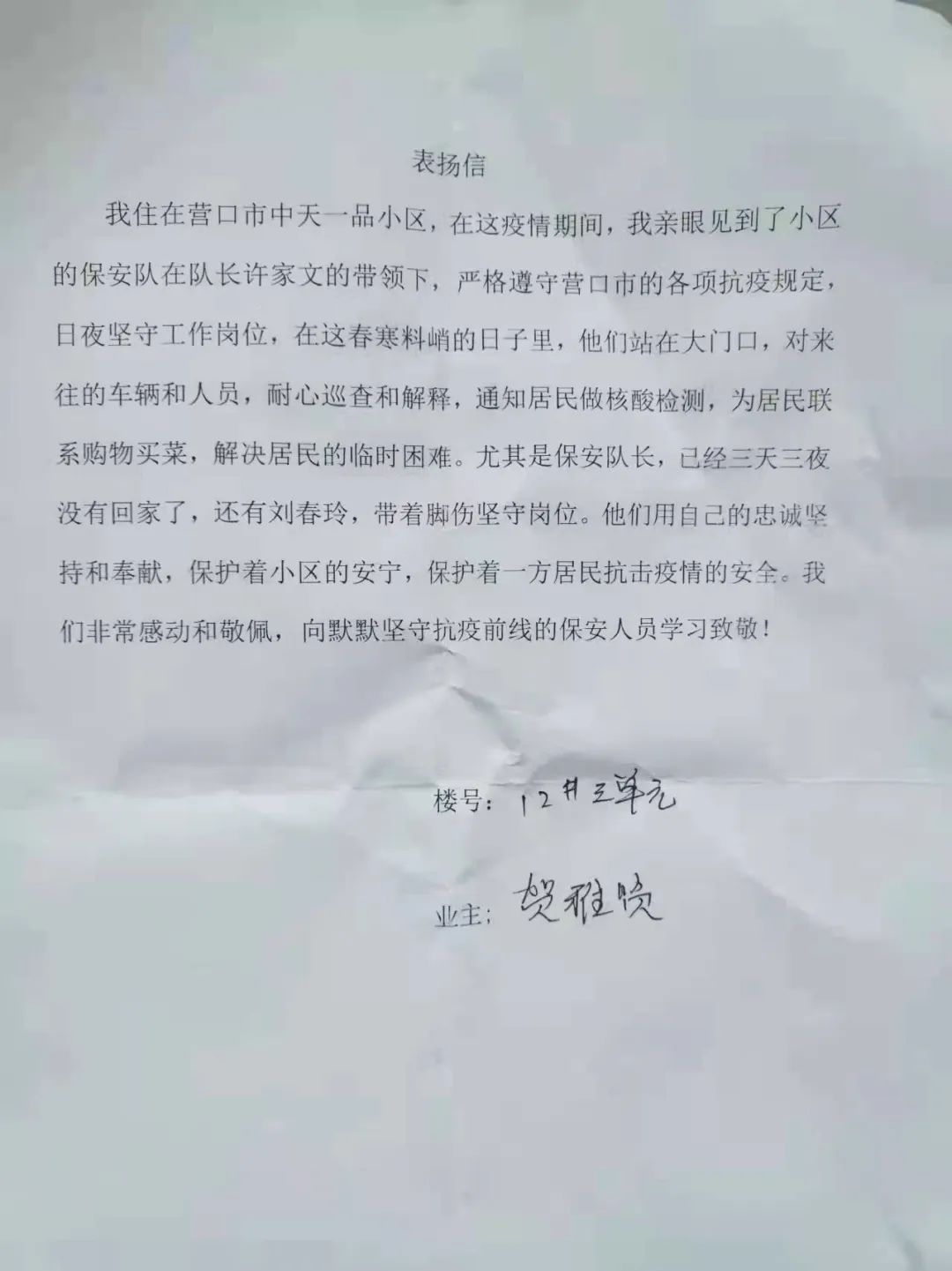 這三天里,物業(yè)人也經(jīng)受了太多的委屈和抱怨。因?yàn)橐咔榉忾],禁止人員外出,部分業(yè)主不理解,把不滿和怨氣都撒在保安的身上,有的爭吵謾罵,有的甚至還動(dòng)手。他們每天都要不停地解釋,承受著各種指責(zé)和辱罵,但他們不退縮,以良好的品質(zhì),堅(jiān)守在自己的崗位上,盡心盡力做好工作。