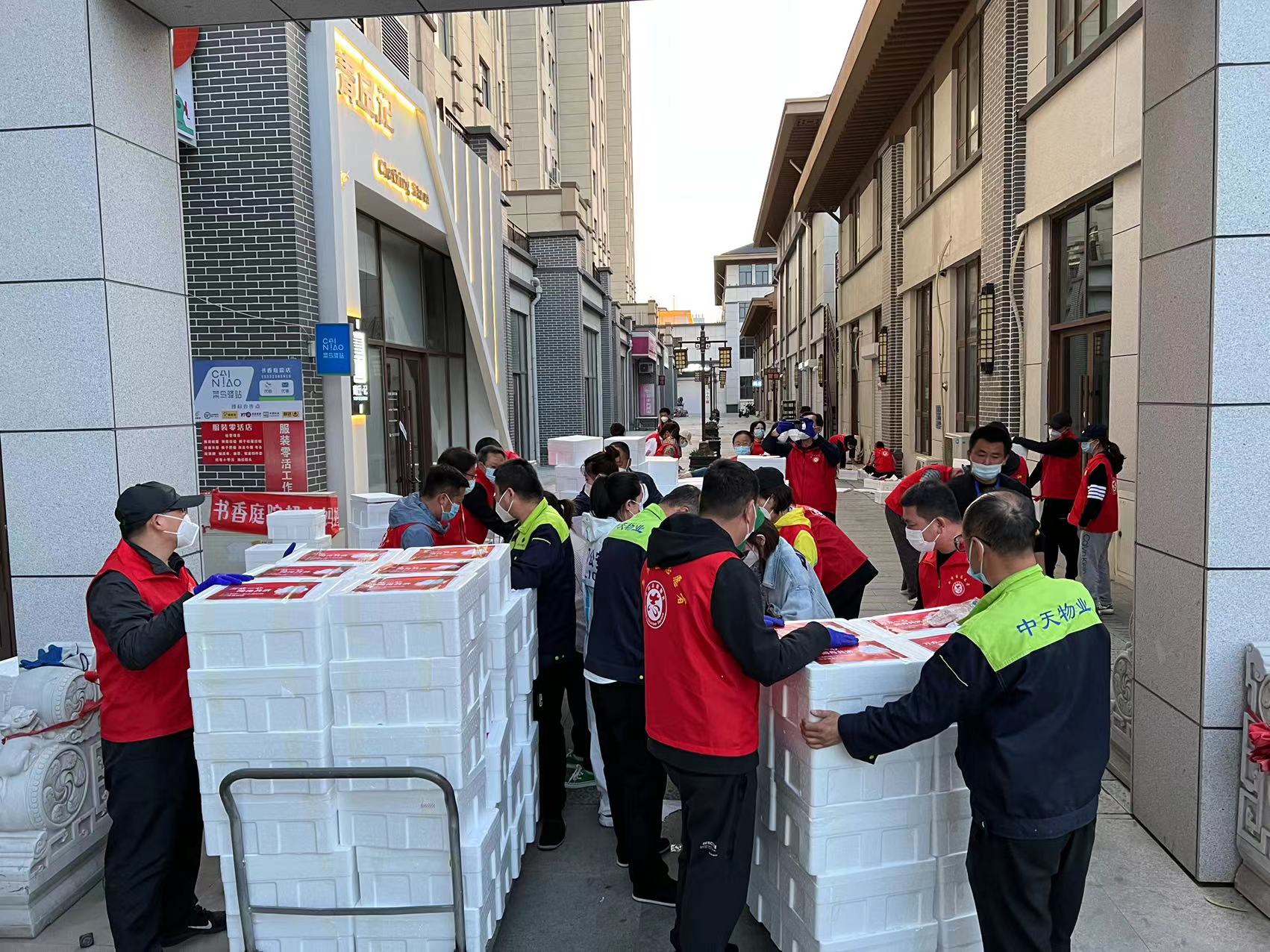 自全市實(shí)施社會(huì)面靜態(tài)管理以來(lái),面對(duì)封控嚴(yán)格、采購(gòu)不易的困難情況,如何能讓廣大封閉在家的業(yè)主生活的更踏實(shí)、更安心,如何能為廣大中天的家人們提供更好的服務(wù),成為中天物業(yè)人的頭等大事。5月14日,經(jīng)過(guò)多方溝通協(xié)調(diào),中天物業(yè)采購(gòu)了大量的肉蛋蔬菜,為居住在中天旗下物業(yè)的每戶送上一份包含豬肉、雞蛋、黃瓜、豆角、茄子、蘑菇、辣椒、土豆、蒜薹、餃子共10種物資的禮包。從15日起,10輛物資配送車先后去往中天·御景華庭、中天壹品、中天尚品、中天·君臨天下、中天·桃花源、中天·御景灣、中天·御荷苑、中天·書香庭院、中天·英倫名邸,中天國(guó)際,中天大廈等11個(gè)營(yíng)口住宅小區(qū),由物業(yè)員工和業(yè)主志愿者進(jìn)行分裝,逐棟樓通知領(lǐng)取,將溫暖送到4萬(wàn)多業(yè)主手中。