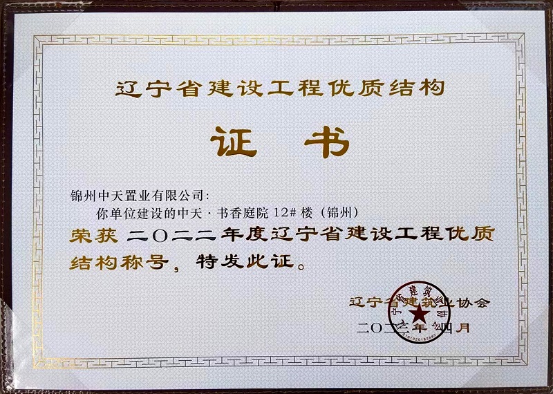 4、錦州中天·書香庭院一期獲“省優(yōu)質(zhì)結構工程”獎