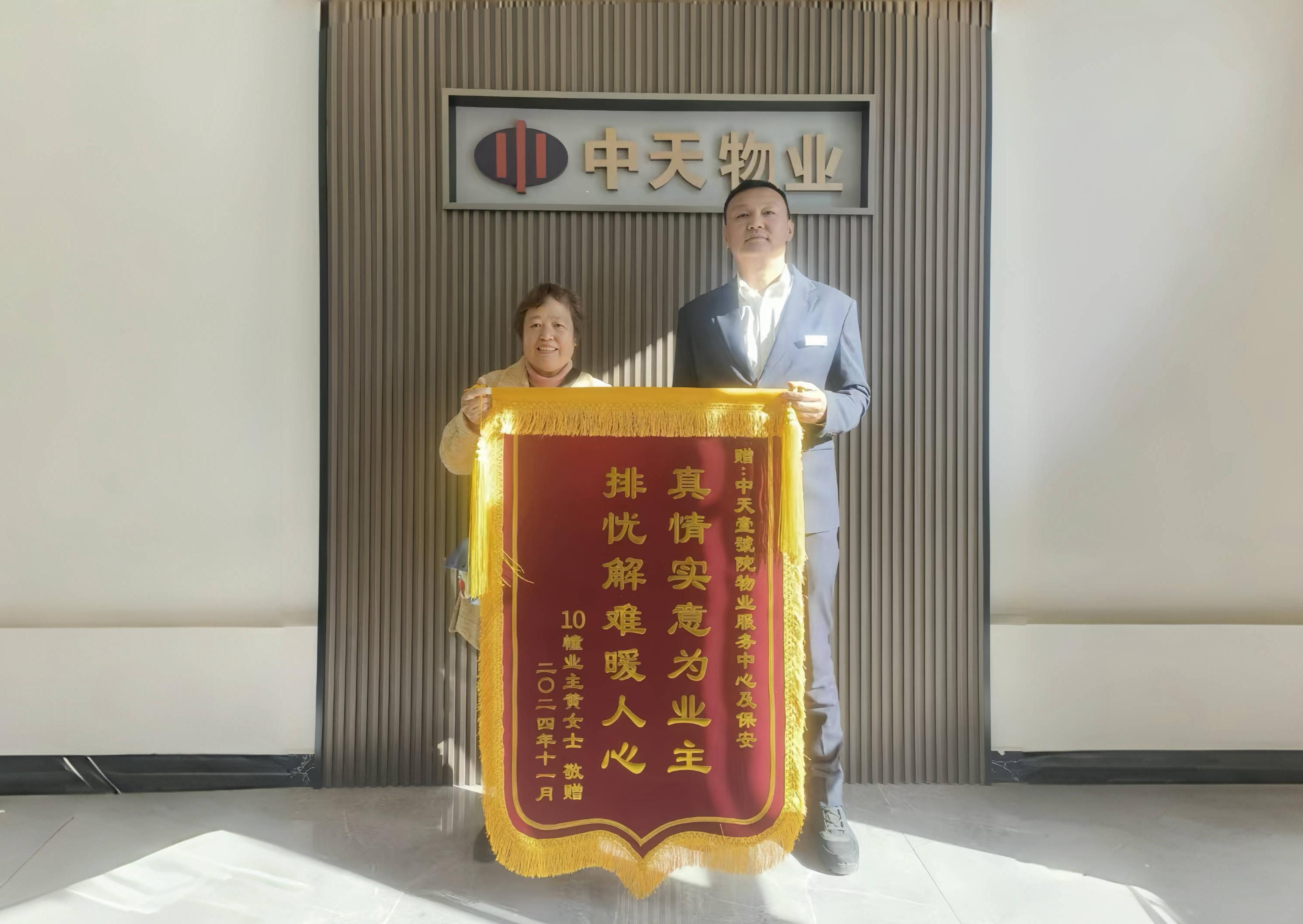 11月5日下午,10號(hào)樓業(yè)主給壹號(hào)院物業(yè)服務(wù)中心送上“真情實(shí)意為業(yè)主 排憂(yōu)解難暖人心”的錦旗并向拾金不昧的物業(yè)秩序部的員工致謝。據(jù)了解,原來(lái)是一天前曾在小區(qū)發(fā)生了一件“秩序員拾金不昧,手機(jī)歸還失主”的好人好事,為了表示感謝員工這種拾金不昧的精神,業(yè)主親自將錦旗送到壹號(hào)院物業(yè)服務(wù)中心致謝。