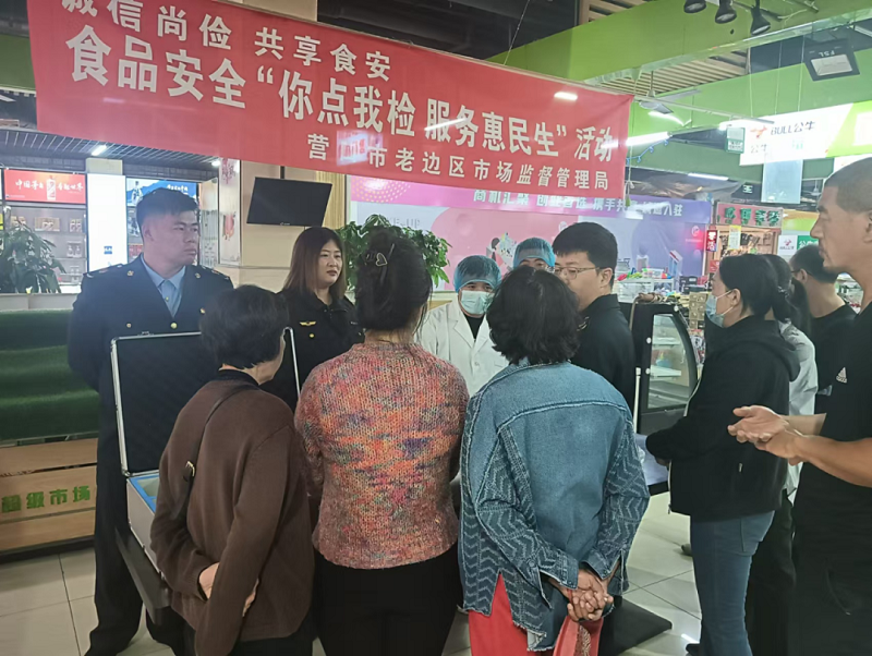 為進(jìn)一步提高廣大居民群眾的食品安全意識(shí),著力解決其日常生活中遇到的食品安全問題及疑惑,積極營(yíng)造食品安全共治共享濃厚氛圍,10月17日老邊區(qū)市場(chǎng)監(jiān)督管理局以“誠信尚儉 共享食安”為主題,在中天農(nóng)貿(mào)市場(chǎng)開展了食品安全宣傳周“你點(diǎn)我檢”服務(wù)惠民生活動(dòng)。