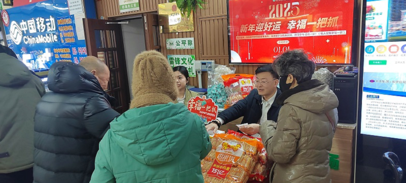 活動現場,策劃推廣部的同事們精心布置了琳瑯滿目的獎品,雪餅、仙貝、糖果散發(fā)著誘人的甜香,而芝麻丸、花生、瓜子、核桃等堅果類食品則傳遞著健康與活力的信息。顧客們圍攏在活動區(qū),眼中閃爍著期待與興奮的光芒。參與者們躍躍欲試,尋找最佳時機,將手伸進裝滿獎品的大筐中,抓取屬于自己的那份“幸福”。