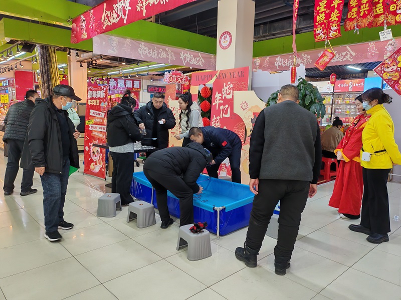 為迎接新春佳節(jié)的到來,中天農(nóng)貿(mào)市場于1月25日至1月27日特別舉辦了以“新年快樂,年年有余”為主題的撈魚活動,消費達額即可參與一次。