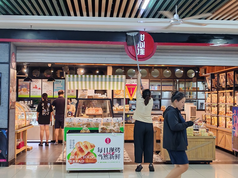環(huán)境提升行動(dòng)中,商戶們積極響應(yīng)號(hào)召,自發(fā)對店鋪門頭、玻璃櫥窗進(jìn)行深度清潔,市場整體外觀煥然一新。物業(yè)團(tuán)隊(duì)則利用夜間閉店時(shí)段,對天花板積塵、蛛網(wǎng)進(jìn)行徹底清掃,進(jìn)一步夯實(shí)衛(wèi)生基礎(chǔ)。此外,策劃推廣部精心拍攝新商戶入駐宣傳視頻,通過市場群、員工群聯(lián)動(dòng)轉(zhuǎn)發(fā),顯著提升新商戶知名度,有效拉動(dòng)客流與經(jīng)營業(yè)績。