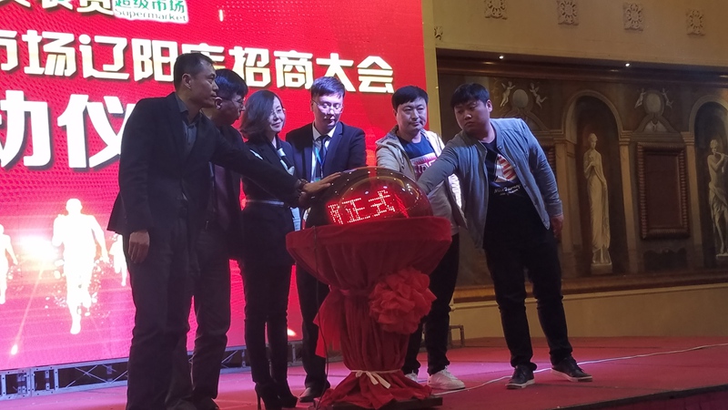 兩點(diǎn)四十五分,中天農(nóng)貿(mào)超級市場(遼陽御品店)招商會啟動儀式正式開始,中天集團(tuán)副總經(jīng)理于洪波、遼陽分公司總經(jīng)理孫繼莊、中天農(nóng)貿(mào)公司總經(jīng)理張琳、中天農(nóng)貿(mào)超級市場(遼陽御品店)副總經(jīng)理郭子瑋先生以及商戶代表,共同觸碰水晶球,完成啟動儀式。五彩繽紛的水晶球,見證了著重要的歷史時(shí)刻。
